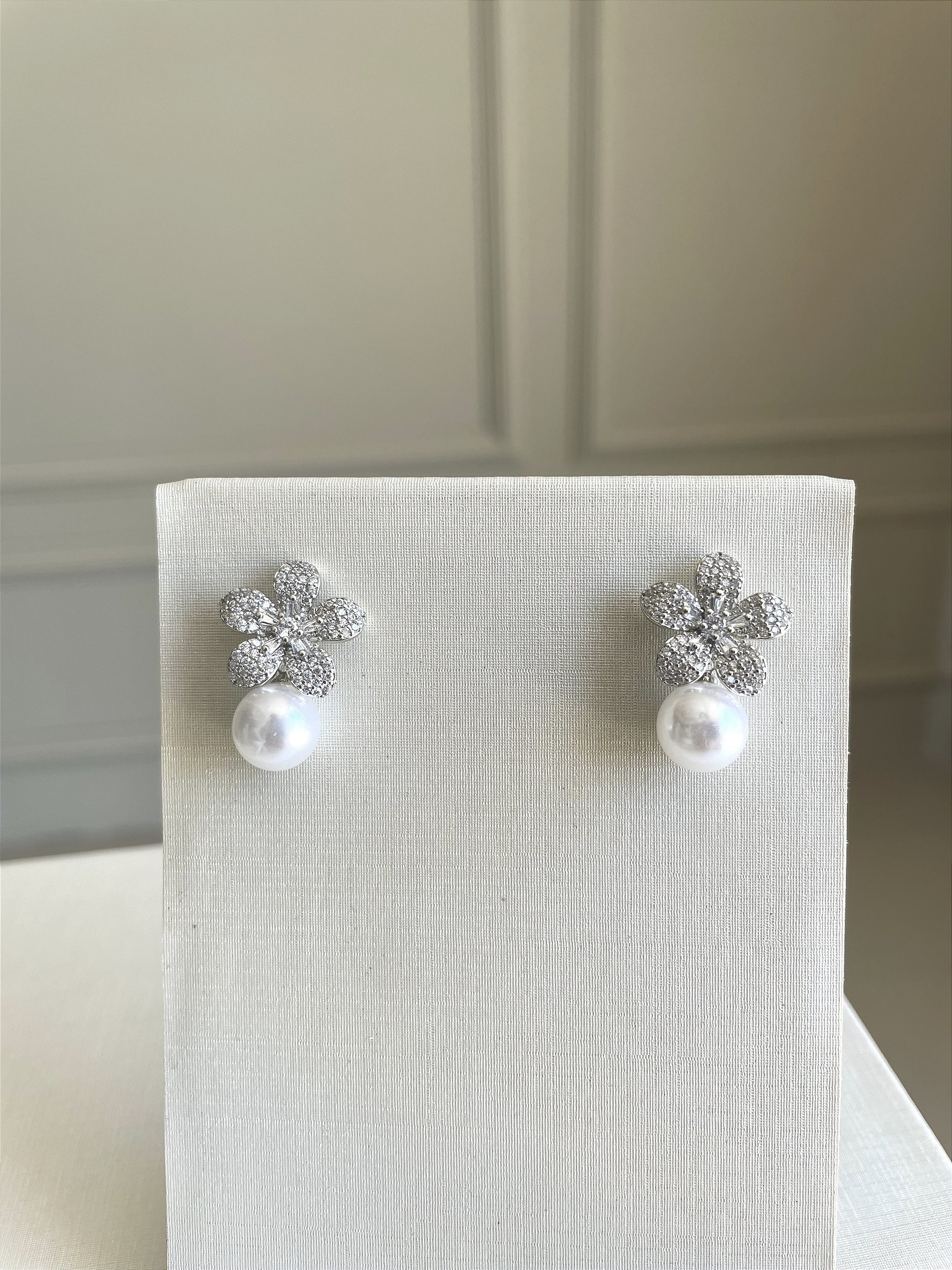 BRINCO FLOR COM PEROLA CRAVEJADO
